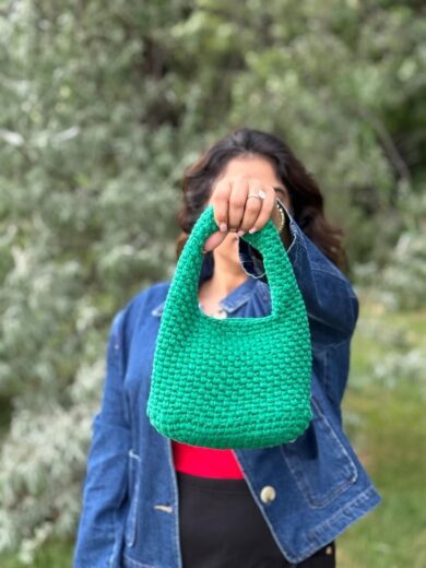 Made with 100% cotton yarn, this playful yet practical bag adds a soft touch of charm to your everyday style — lightweight, breathable, and beautifully handmade.
